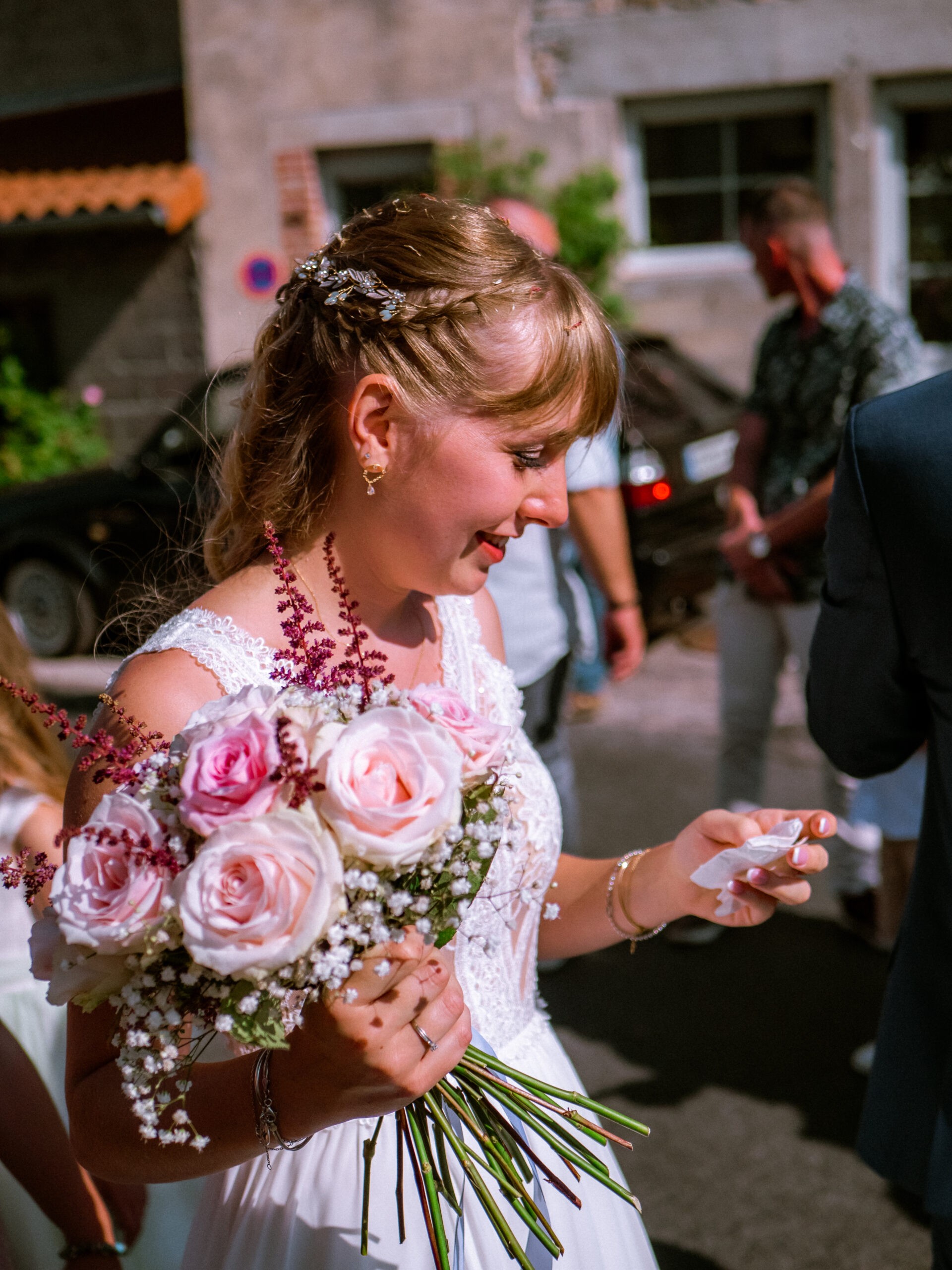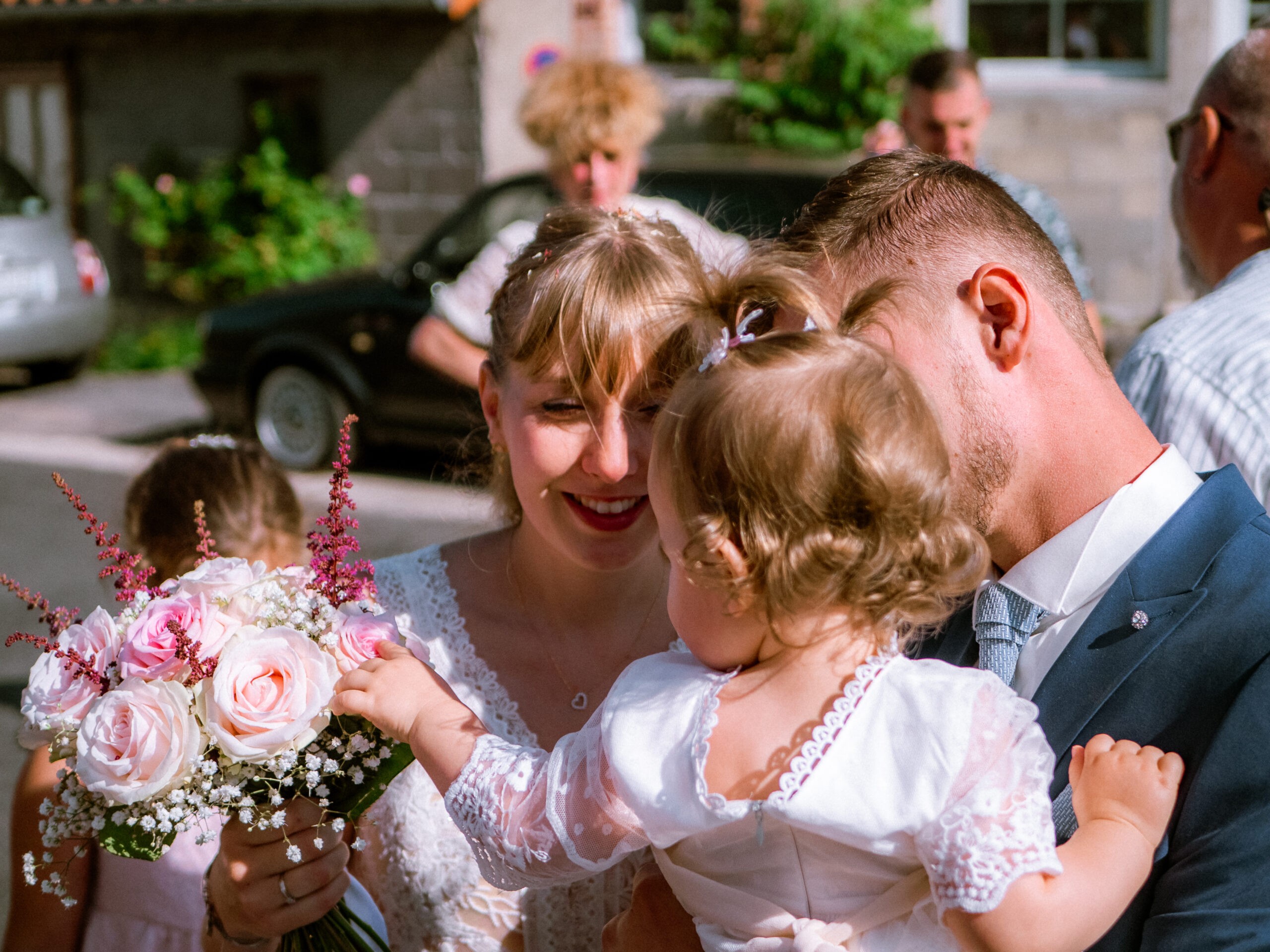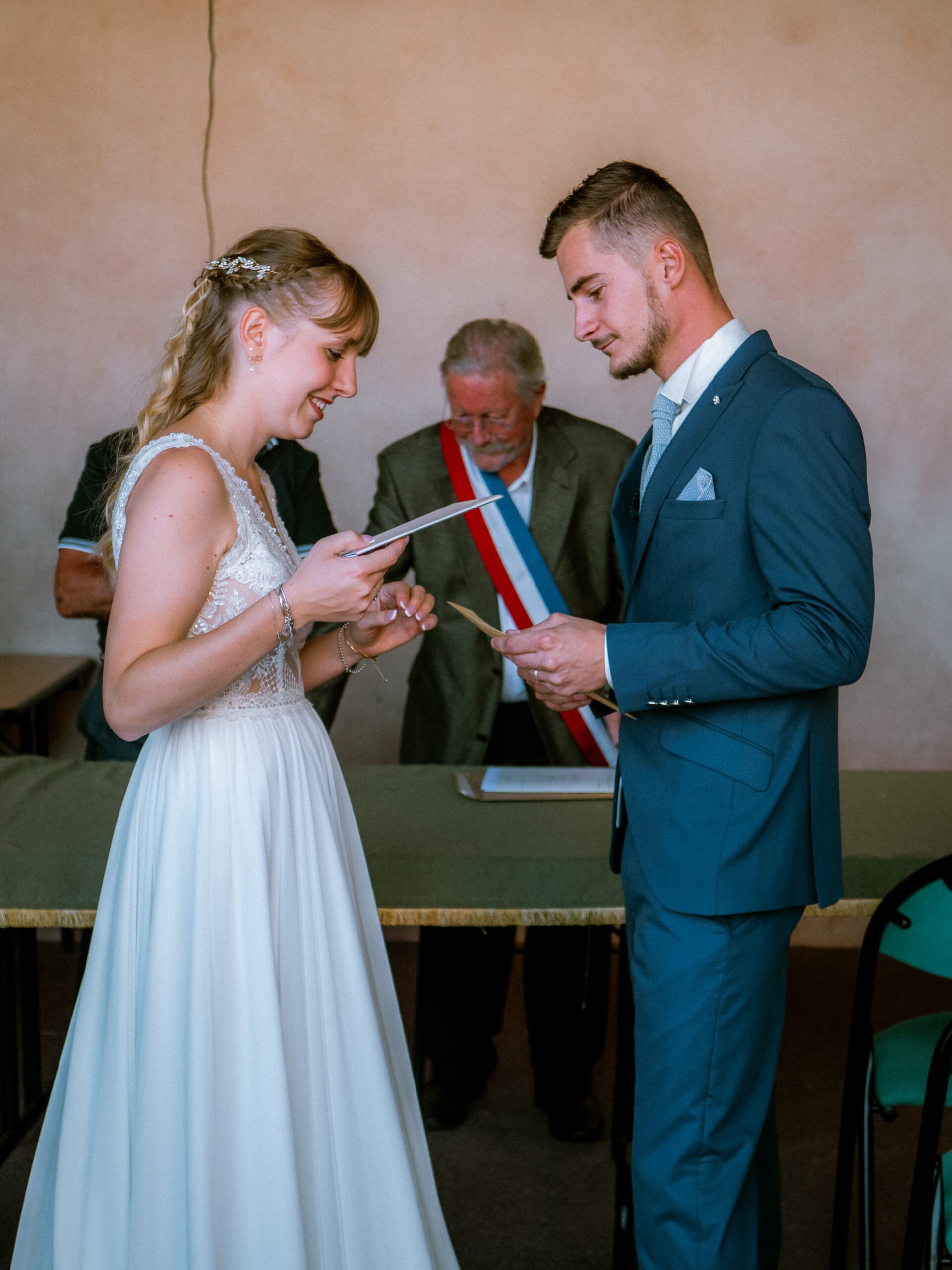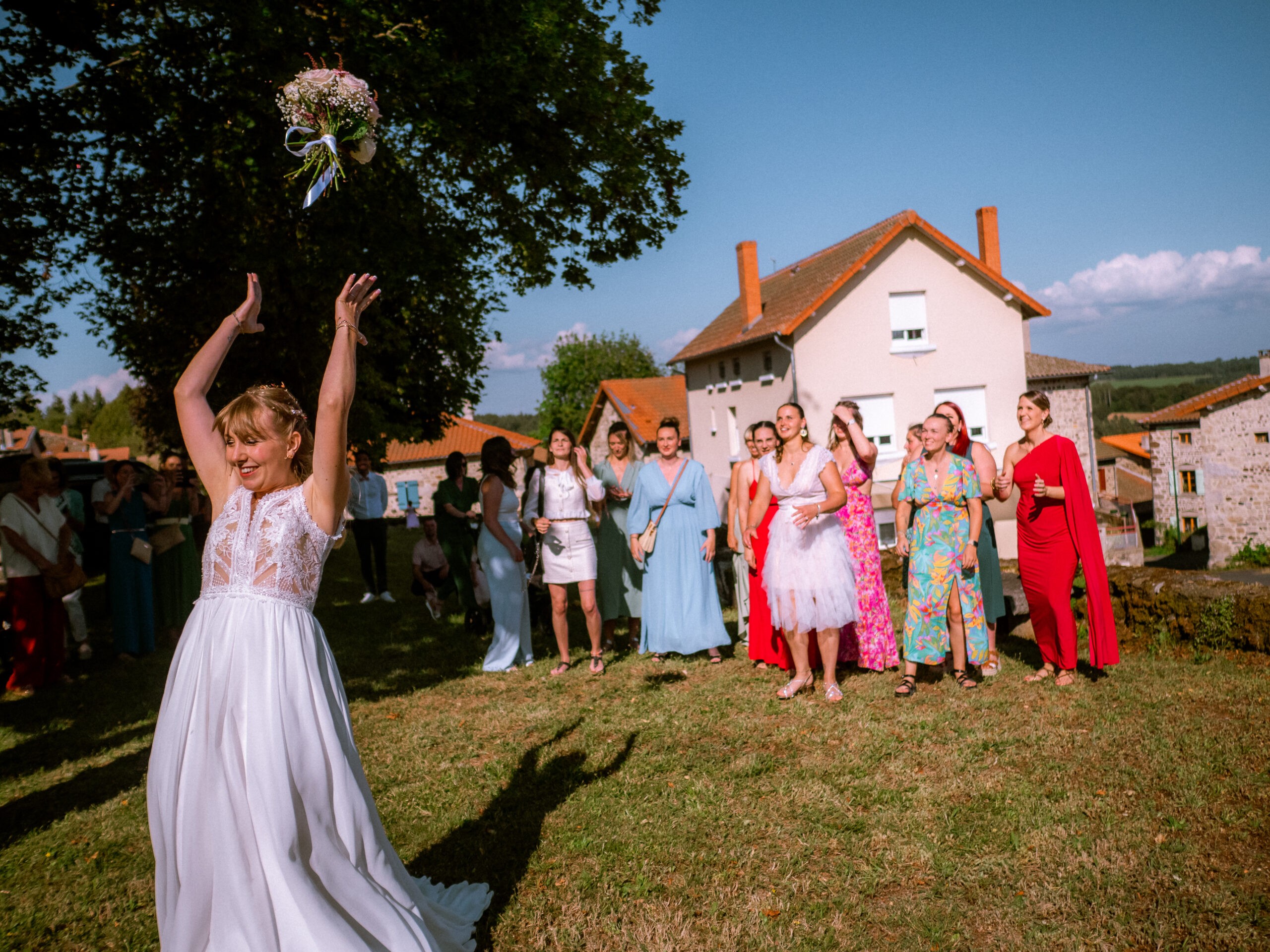 Mairie, photos de groupe et soirée — l'essentiel, rien de plus. Ceux qu'on aime réunis, dans le cadre brut et sincère de l'Auvergne, et des moments qu'on ne cherche pas à contrôler. Juste à attraper.